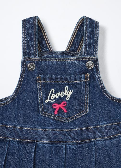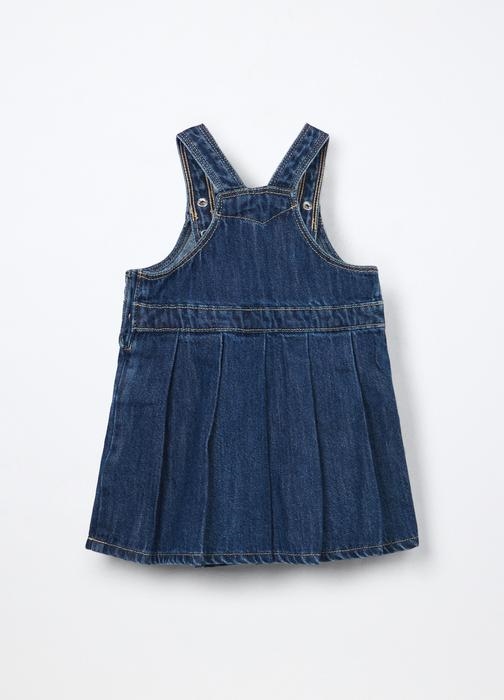Ova haljina-salopeta od denima savršena je za jesenske dane. Izrađena od tkanog materijala, pruža udobnost i stil za djevojčice od 6 do 36 mjeseci. Tamnoplava boja čini je idealnim izborom za svaku priliku.
