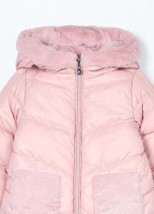 Dječja zimska jakna s kapuljačom u ružičastoj boji izrađena je od tkanog materijala. Idealna je za djevojčice u dobi od 9 do 36 mjeseci, pružajući toplinu i udobnost tijekom hladnih zimskih dana.