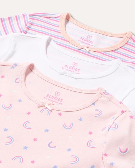 Ove mekane i udobne majice za djevojčice dolaze u paketu od tri komada u raznim bojama. Izrađene su od pletenog materijala, idealne za ljetne dane. Dostupne veličine su 3-4, 5-6, 7-8 i 9-10 godina.