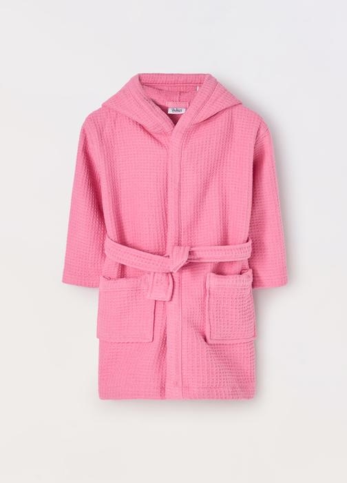 Mekani ogrtač za bebe izrađen od čistog pamuka u ružičastoj boji, idealan za ljetne dane. Dizajniran s kapuljačom za dodatnu udobnost, savršen je za djevojčice. Veličine od 12 do 36 mjeseci.