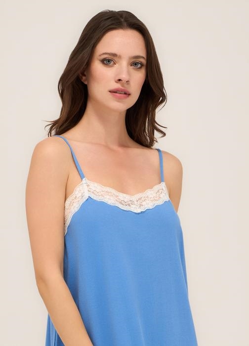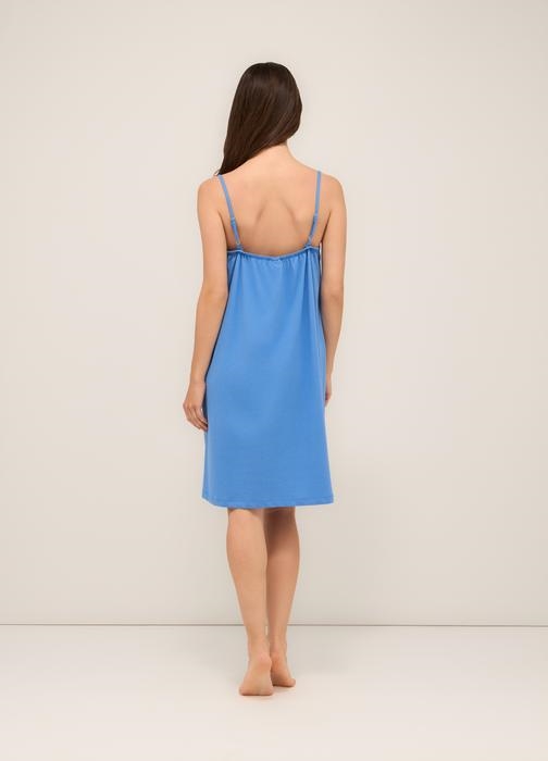 Ova ženska noćna košulja izrađena je od čistog pamuka, pružajući mekoću i udobnost tijekom ljetnih noći. Dostupna u elegantnoj plavoj boji, savršena je za opuštanje i spavanje. Veličine: S, M, L, XL, XXL.