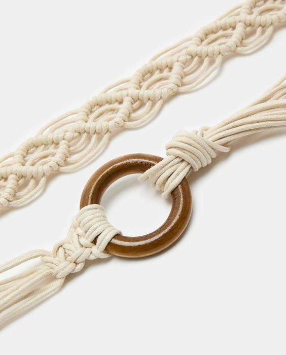 Pojas od pletenog užeta s kontrastnom kopčom. Zatvaranje čvorova s resama.