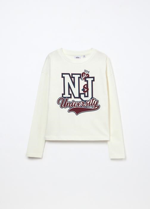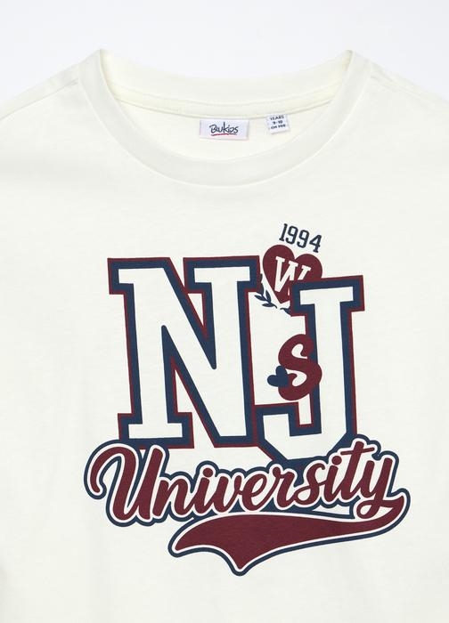 Ova bijela majica izrađena je od čistog pamuka, idealna za jesenske dane. Mekana i udobna, savršena je za djevojčice u dobi od 9 do 15 godina. Dostupna u veličinama od 9-10 do 14-15 godina.