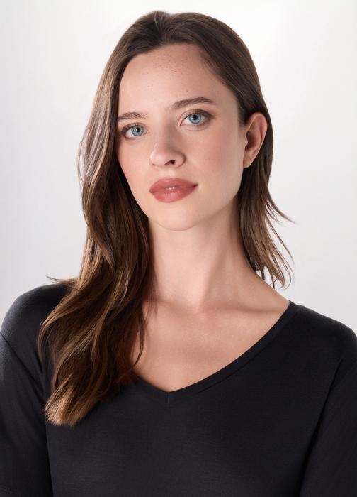 Ova crna ženska majica izrađena je od mekane viskoze, idealna za jesenske dane. Dizajnirana za udobnost i stil, savršena je za svakodnevno nošenje. Dostupna u veličinama od XS do XL.