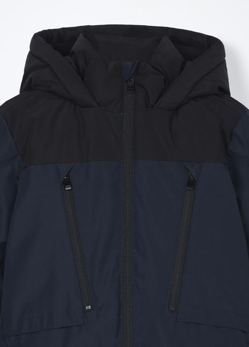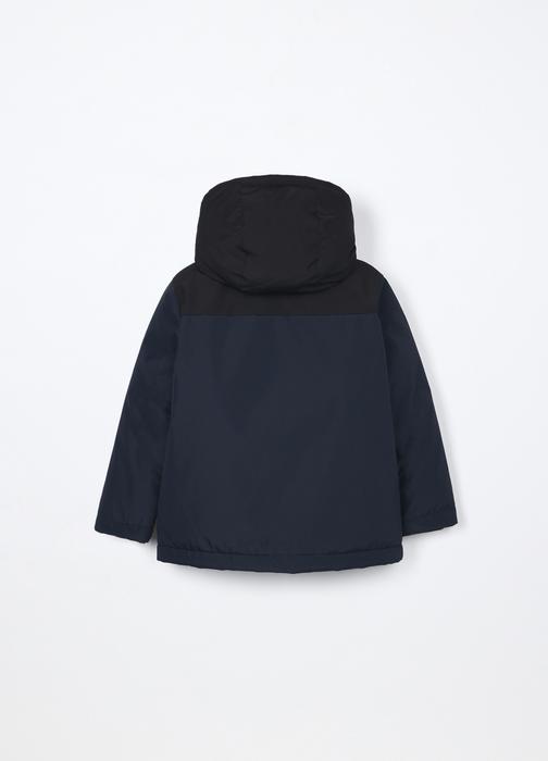 Dječja parka s kapuljačom u tamnoplavoj boji, izrađena od tkanog materijala. Idealna za zimske dane, pruža toplinu i udobnost za dječake. Dostupna u veličinama od 3 do 10 godina.