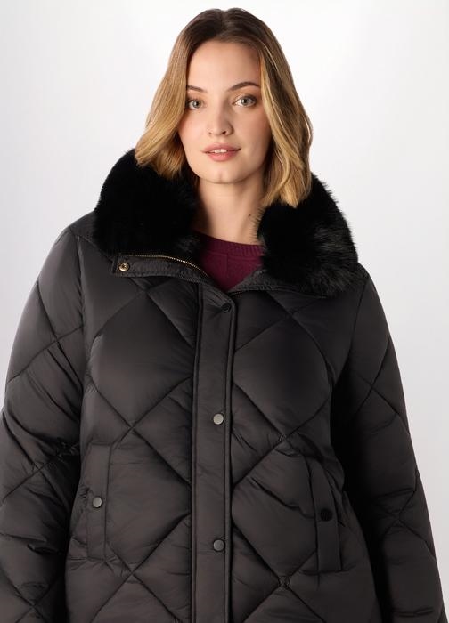Ova duga crna ženska jakna izrađena je od tkanog materijala, idealna za zimske dane. Dizajnirana je za žene koje traže udobnost i stil tijekom hladnih mjeseci. Dostupna u veličinama S do XXL.