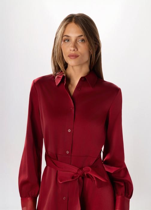 Ova kratka haljina od satena u boji rododendrona savršena je za jesenske dane. Izrađena od tkanog materijala, pruža udobnost i eleganciju. Idealna za žene koje traže stil i udobnost.